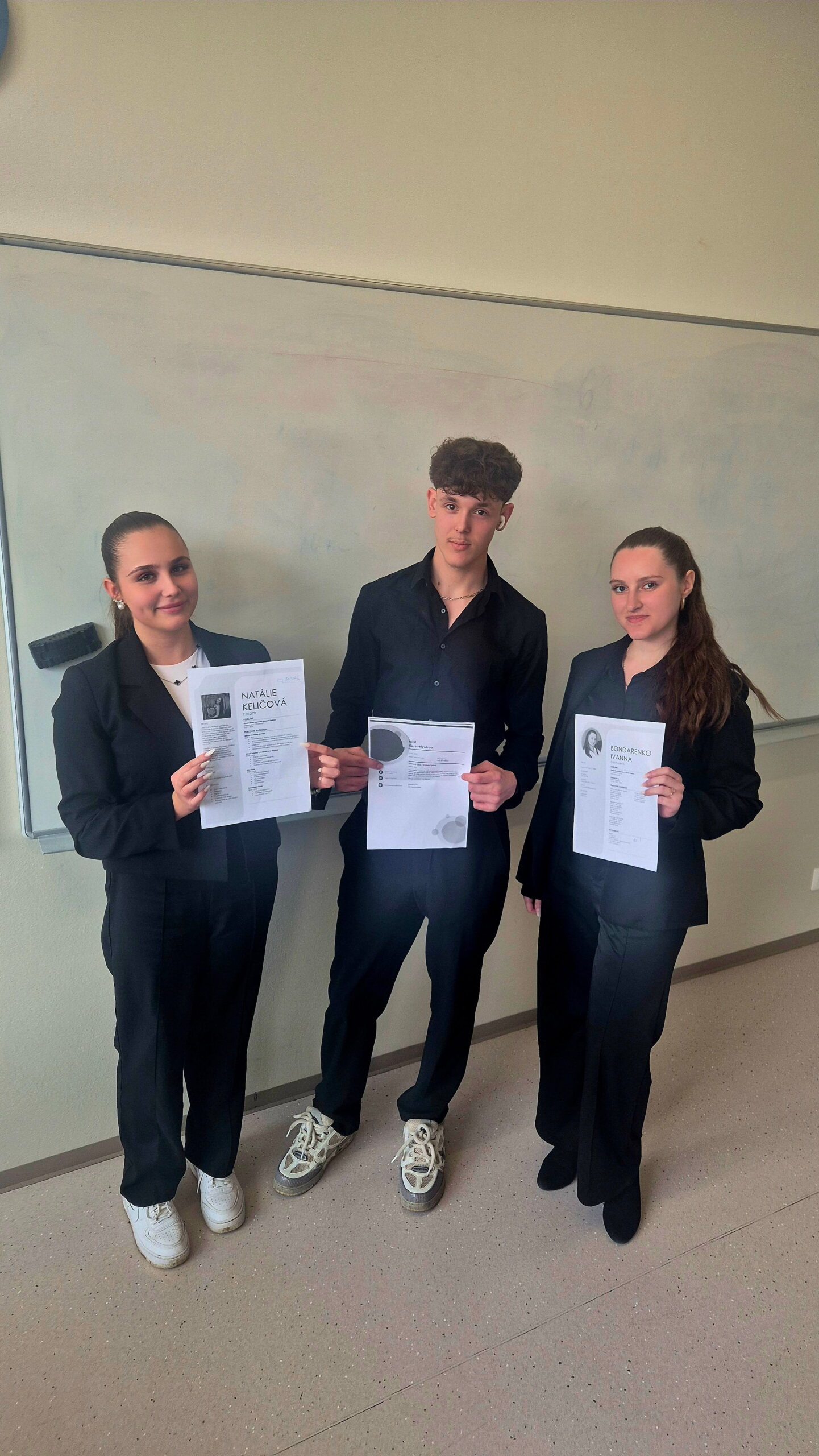Druhý den byl zaměřen na praktickou aplikaci získaných poznatků prostřednictvím simulovaného přijímacího pohovoru. Tato modelová situace poskytla žákům příležitost rozvíjet komunikační dovednosti, reagovat na typické otázky personalistů a získat cennou zpětnou vazbu. Následný rozbor jednotlivých vystoupení přispěl k hlubšímu porozumění průběhu výběrového řízení a k lepší připravenosti žáků na reálné situace na trhu práce.