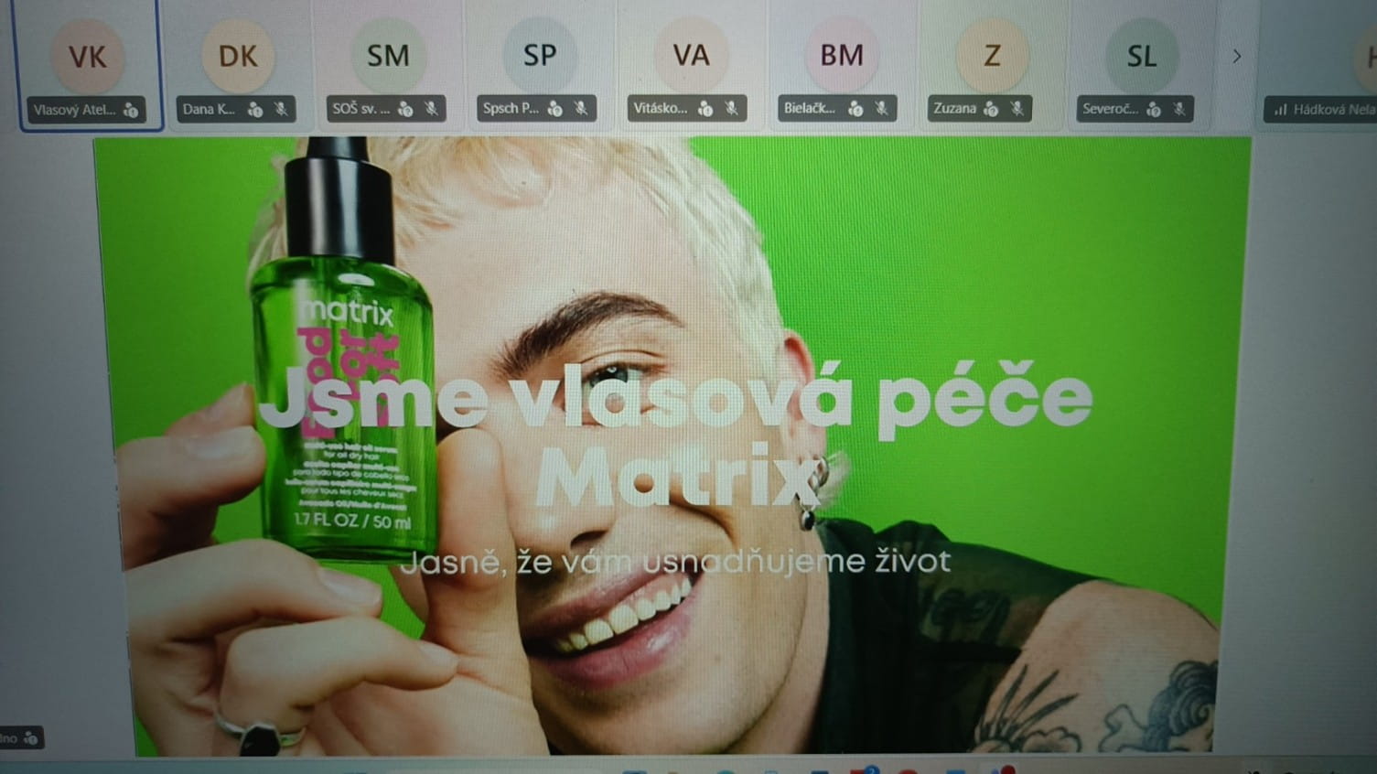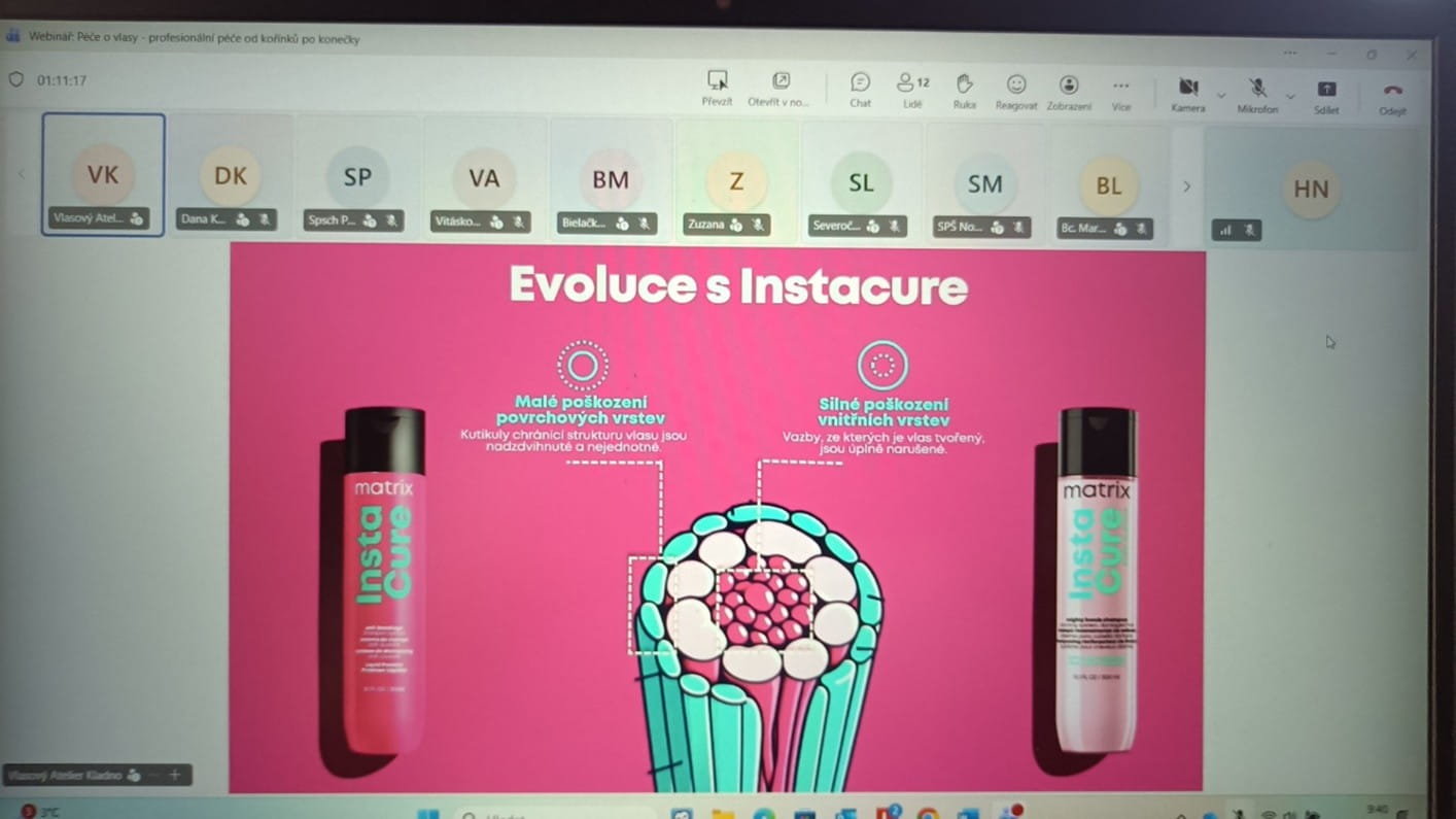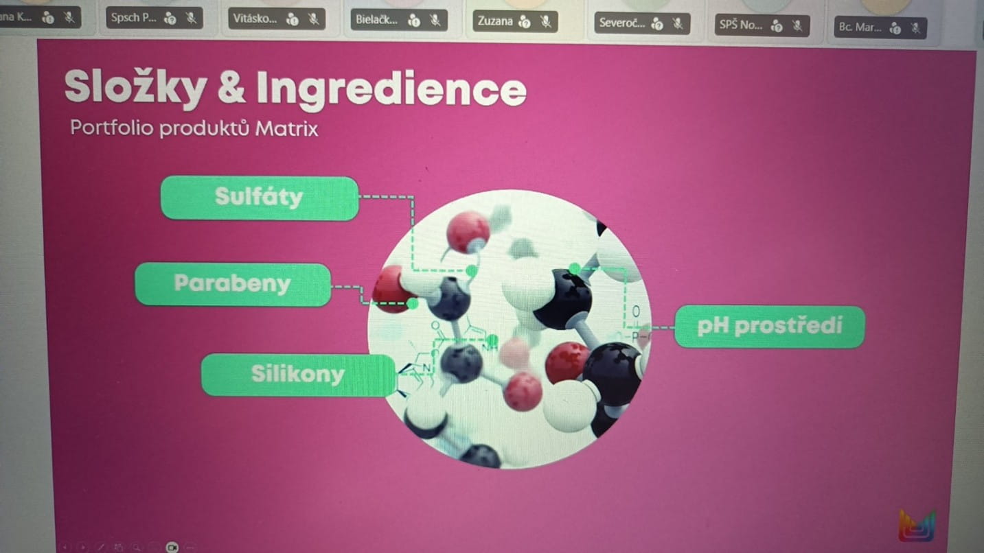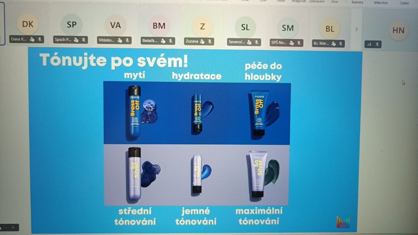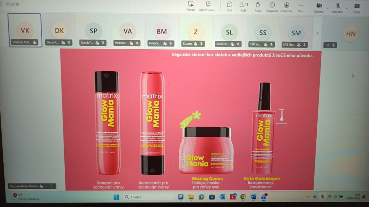 Dne 9. 4. 2026 jsme měli ve výuce online webinář od značky Matrix, kterým nás provázela Slávka Caklová. Naši žáci v kadeřnickém oboru mají možnost sledovat a připojit se ke značce Matrix.