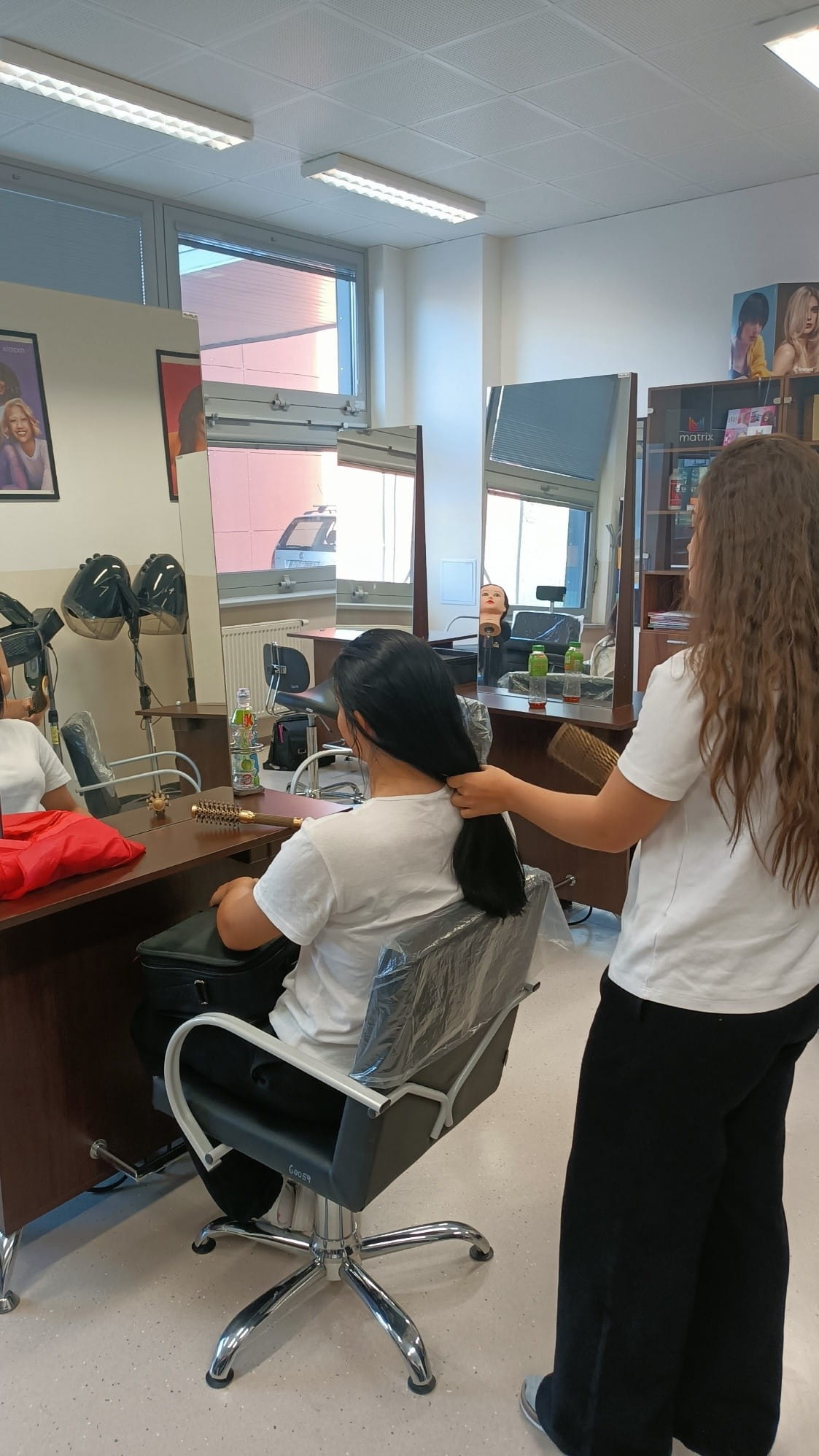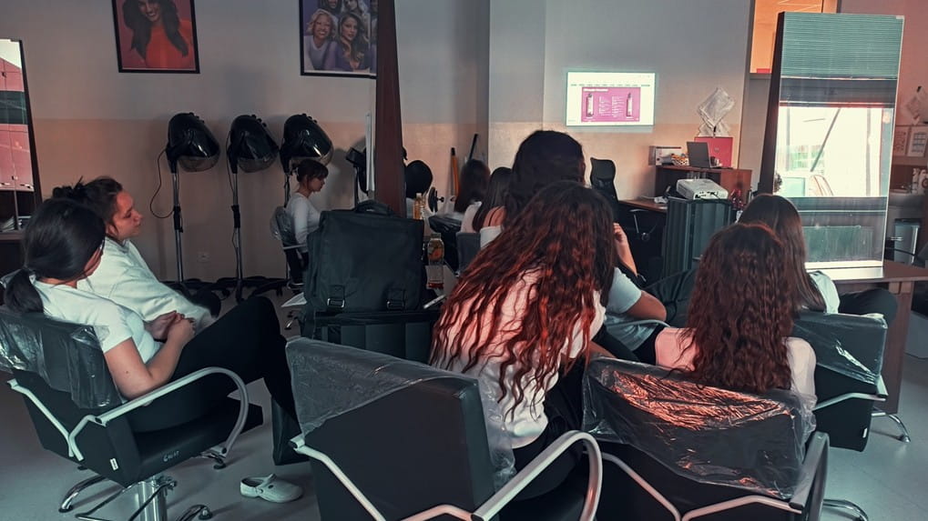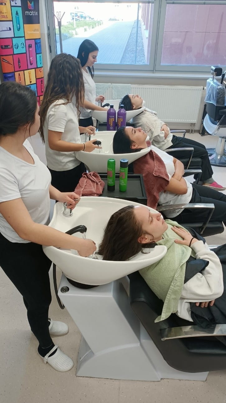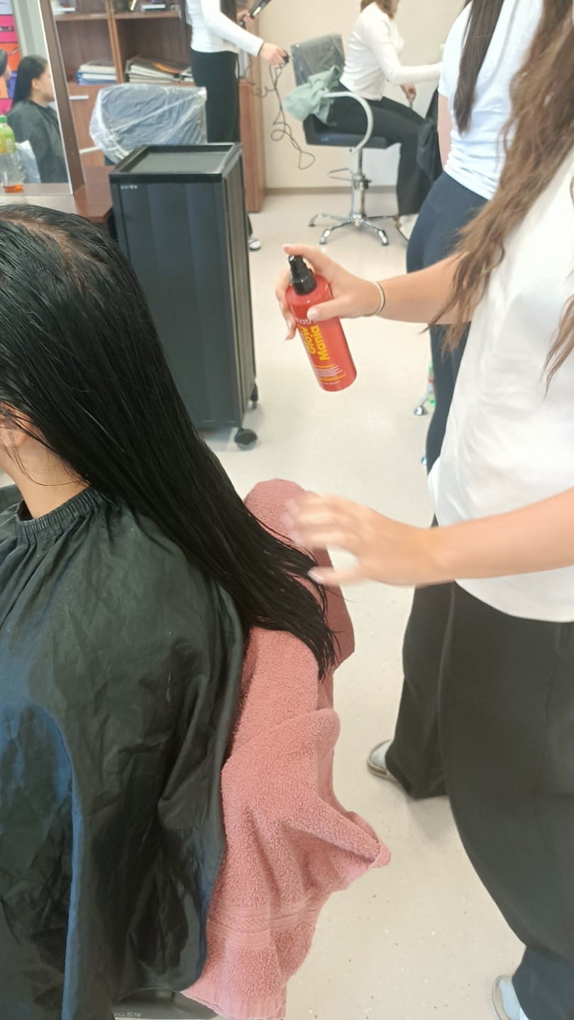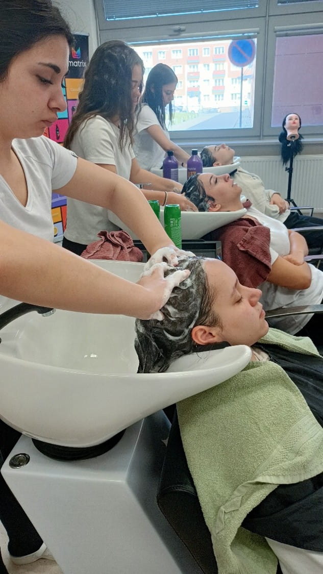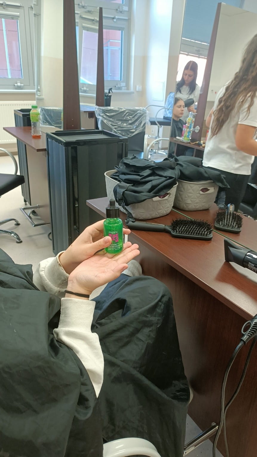 Na odborném výcviku mají naši žáci možnost vyzkoušet produkty značky Matrix, na což jsme se zaměřili v druhé části webináře. Žáci se nejdříve seznámili s jednotlivými produkty. Následně si mezi sebou provedli diagnózu vlasů, která se provádí hmatem, zrakem a komunikací.