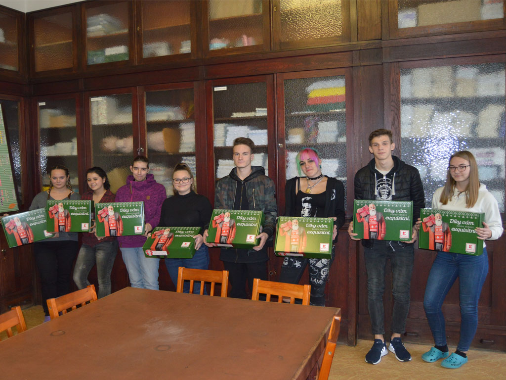 12. 2018 zástupci obchodního řetězce Kaufland, na základě smlouvy o spolupráci, předali škole dárkové balíčky pro vybrané žáky, kteří odvádějí příkladnou práci na smluvních pracovištích v rámci odborného výcviku.